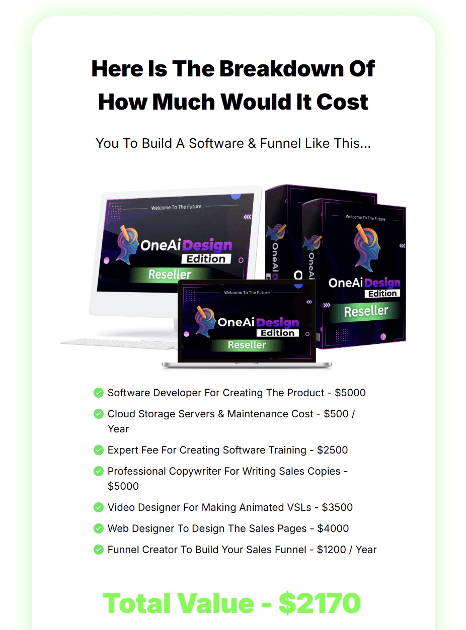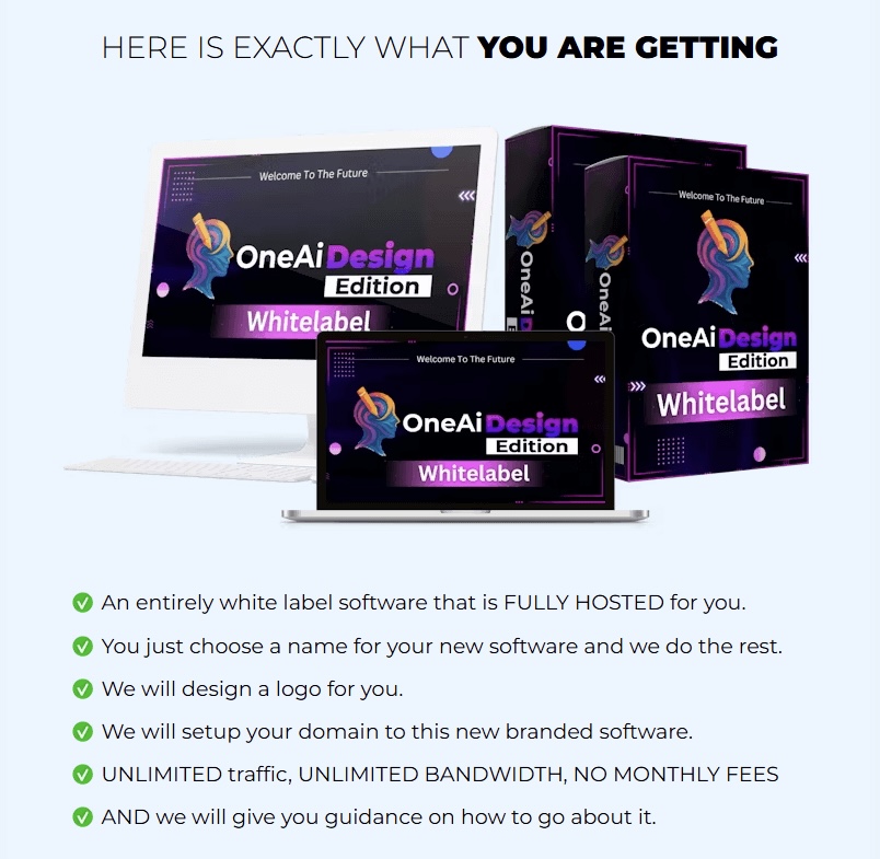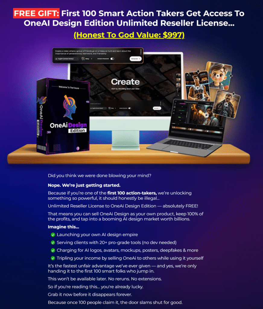 🚀 Use their sales pages, funnels, and brand name, keep 100% of the profits from your front-end sales, and enjoy full rights as an official OneAI Design Edition reseller 🔥.