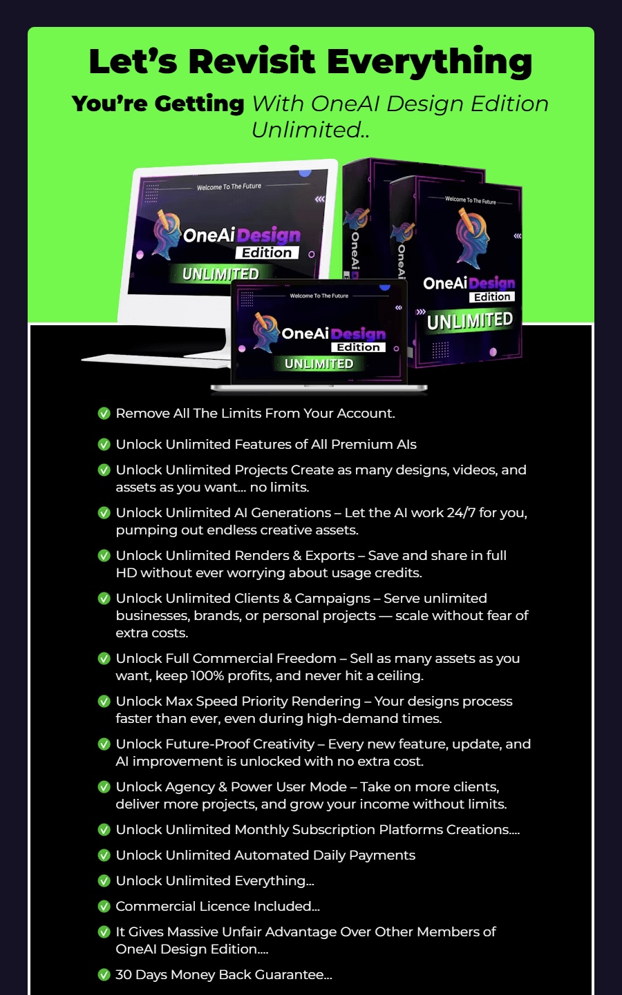 🔓 UNLOCK: Gain access to all premium features from every AI tool and supercharge your OneAI Design Edition account with unlimited 1-click AI content creation ⚡ — plus, enjoy a FREE commercial license included. 💼✨