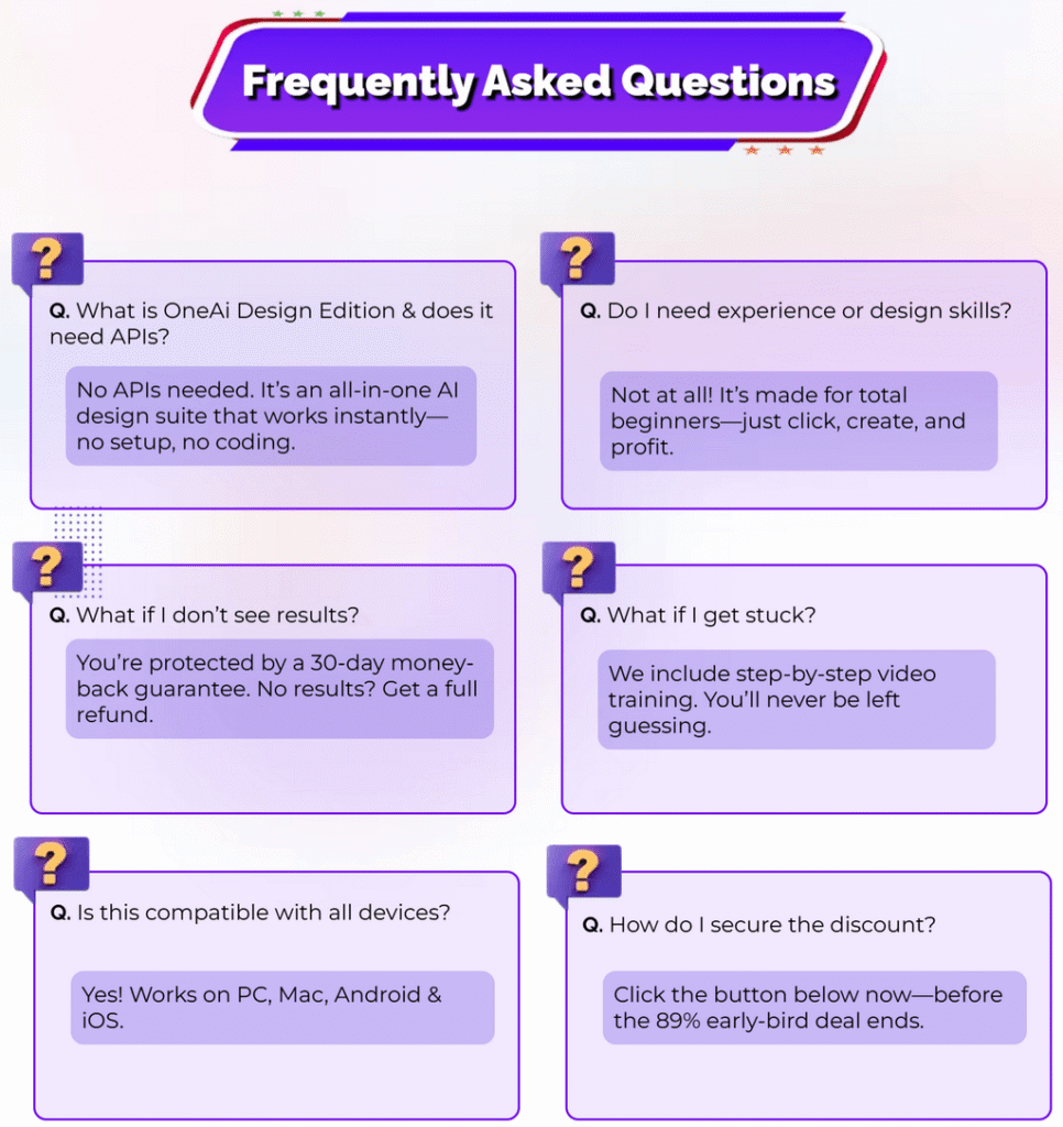 OneAi Design Edition is designed for anyone who wants professional-quality visuals and copy ✨ without wasting time ⏳ or money 💰. It’s perfect for: